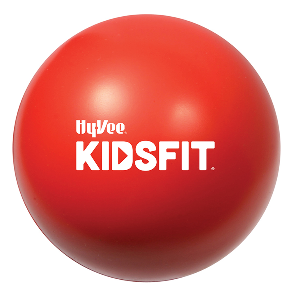 2 3/4" diameter ball shape stress reliever. The red stress ball features the Hy-Vee Kids Fit logo on one side.